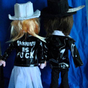 Hoy traemos una pareja de muñecos personalizados de novios con sombrero y cazadoras de cuero con mensaje en la espalda, ¡muy rockeros!. Este encargo fue para regalar en Navidad, pero también sería perfecto para el día de San Valentín ¿verdad? … Continuar